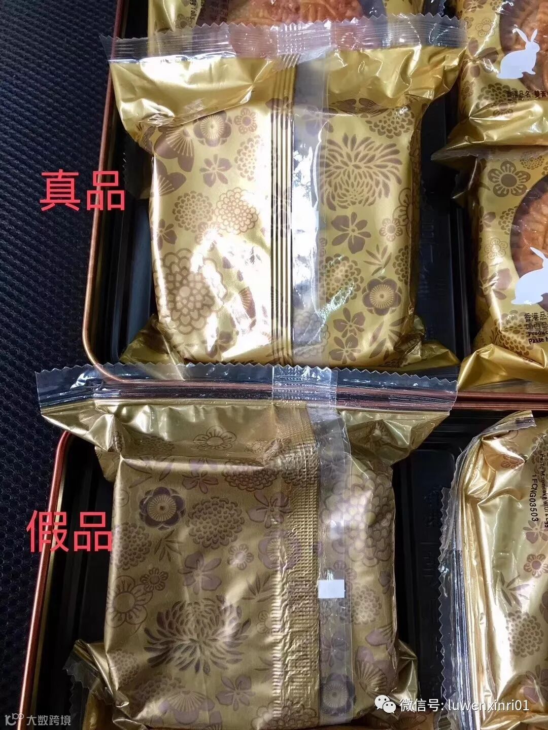 内包装袋子的颜色差异、断口细节,月饼的成色区分