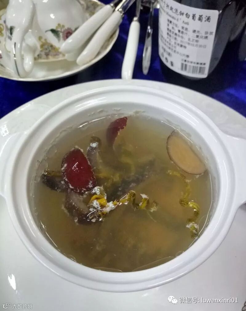 材料:新鲜黑松露2片,80-90头花胶筒1条,瘦肉75g,陈皮小片,红枣1粒(1人份量)