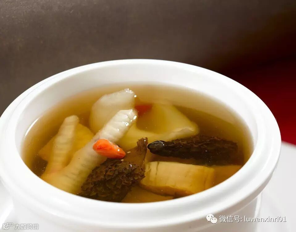 材料:羊肚菌100克,花胶100克,瑶柱40克,鸡脚6只,瘦肉100克,生姜3片,