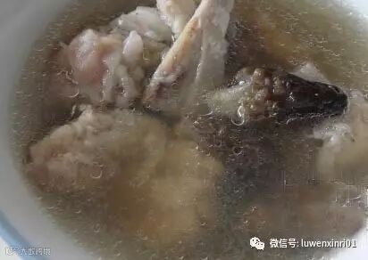 2、猪骨灼掉血水,加适量水煲一小时,加入羊肚菌,再煲30分钟,出锅后加适量盐。