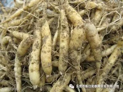 干燥块根呈细长条形或长纺锤形,长约2~6厘米,直径约3~6毫米左右,表面黄白色,半透明,有细皱纹及凹下的须根痕,根头钝圆,其上常有残存的茎痕,下端渐细如鼠尾。质脆易折断,断面黄白色而亮,直接晒干的断面为白色,有粉性,气微,味微甘,以肥润、黄白色、无须根者为佳。