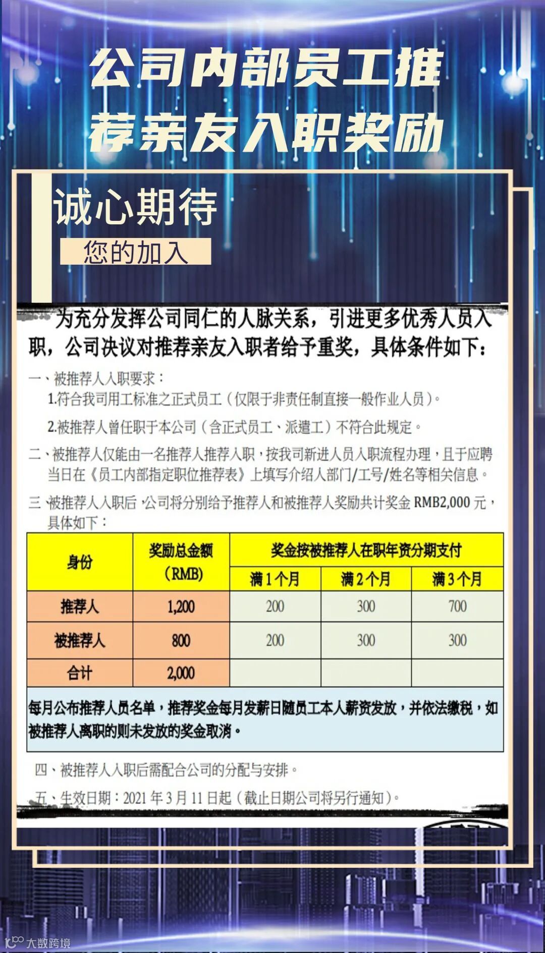 公司内部员工推荐亲友入职奖励