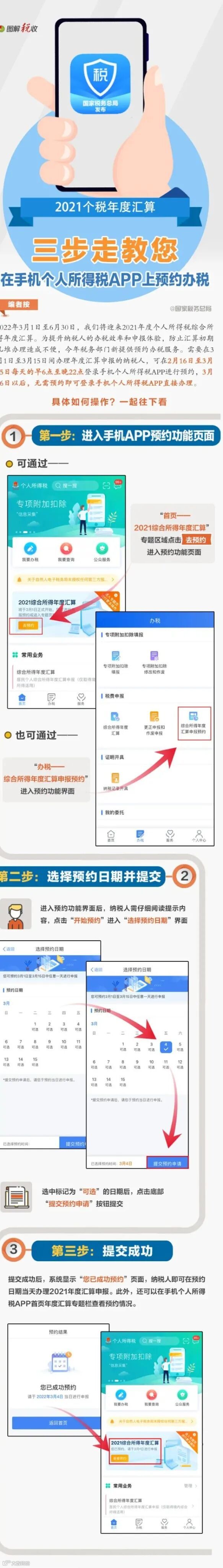 那么,纳税人如何通过个人所得税APP进行预约办税?很简单,三步走,轻松搞定,戳图了解↓