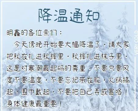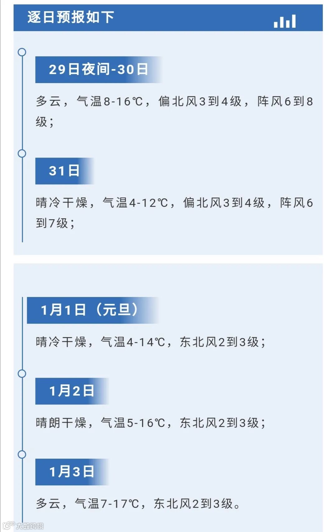 预计,寒潮前锋傍晚前后到达我市,届时我市北风将加大,夜间气温急剧下降,并伴有6-8级偏北阵风,过程降温幅度9-11℃,寒潮过程以干冷天气为主