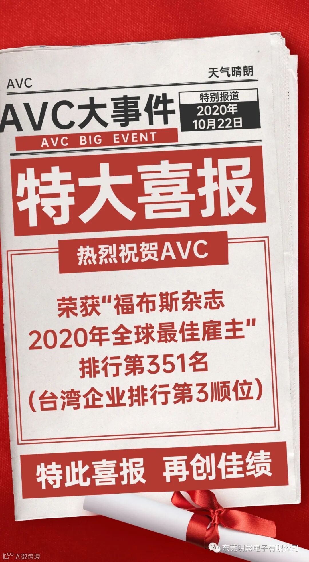 再次祝贺AVC荣登福布斯年度全球最佳雇主排行榜