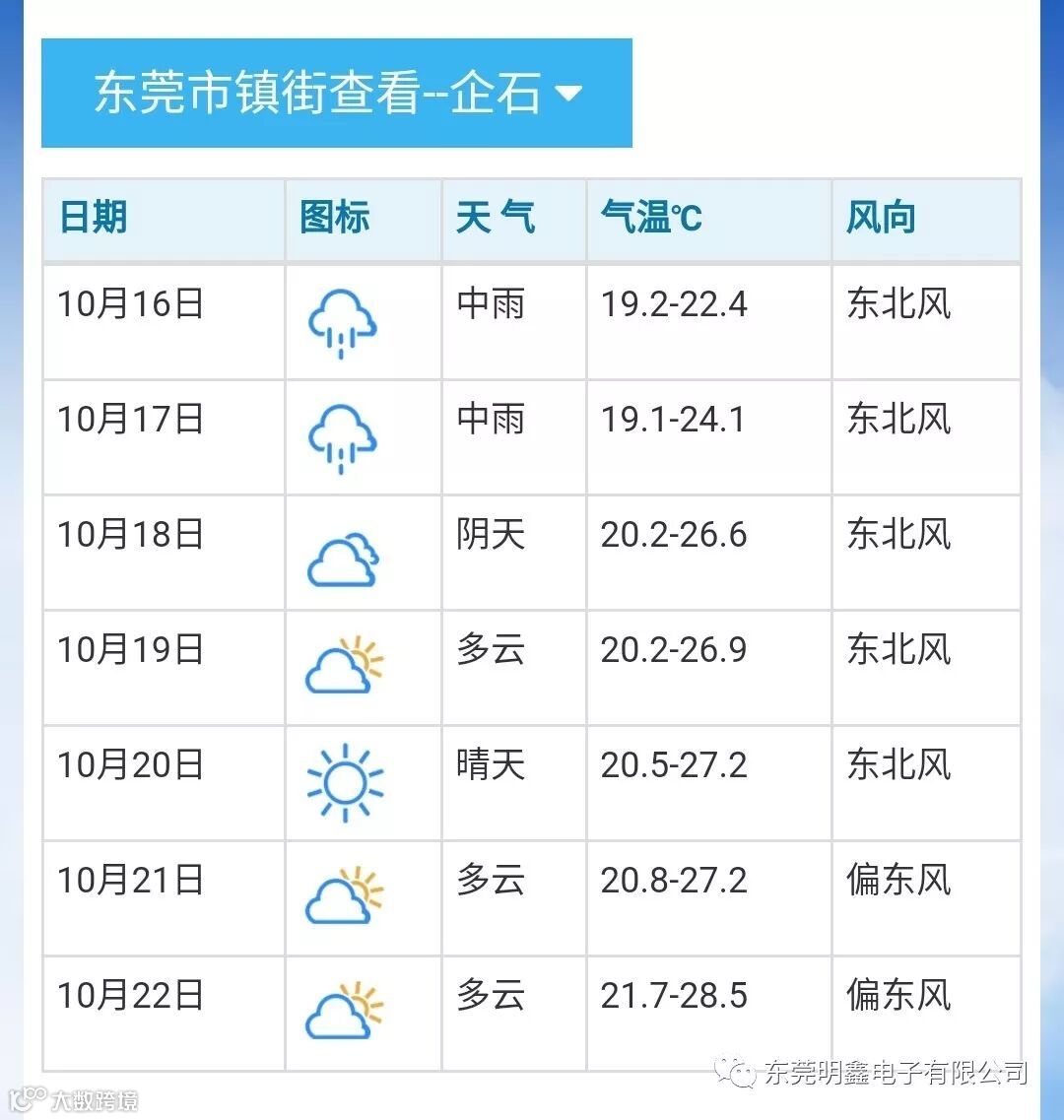据东莞气象台预报: