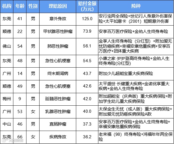 三月赔付前十