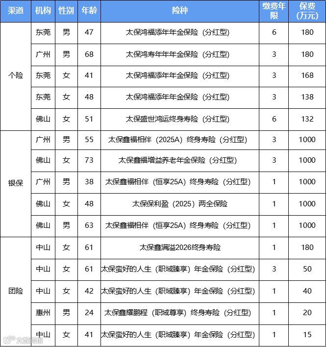 三月个银团保费前五