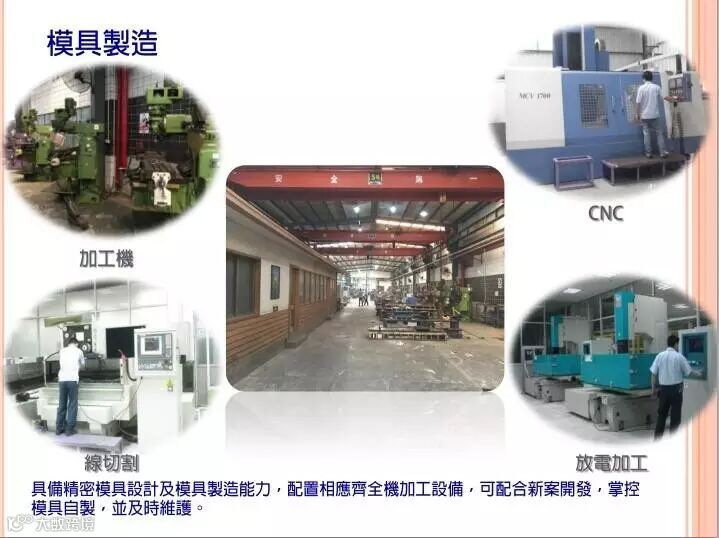 我們具備精密模具設計及模具製造能力,能配合客戶需求,及時作模具設計驗証;且各製造單位配置相對應自動化的製程與持續導入自動化生產設備,提昇生產效率,有效降低生產成本,提供品質穩定的產品。