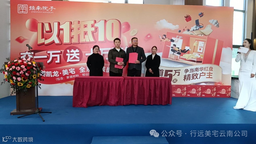 2023年12月12日下午,美宅(红星美凯龙合资)与楚雄州南华县镇南院子在镇南院子营销中心隆重举行战略合作签约仪式。在现场众多嘉宾见证下,美宅云南公司领导与南华海烨旅游地产开发有限公司法人代表签署战略合作协议。