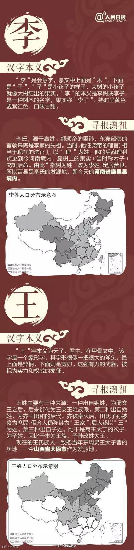 每个人一出生就传承了家族姓氏,它既是我们与生俱来的代号,也是血缘关系的符号。你了解这个跟随自己一生的符号吗?它的本义是什么?主要发源地是哪儿?如今又是怎么分布的?看图,李、王、张、刘、陈、杨……中国18大姓氏的起源,寻根溯祖,收藏!