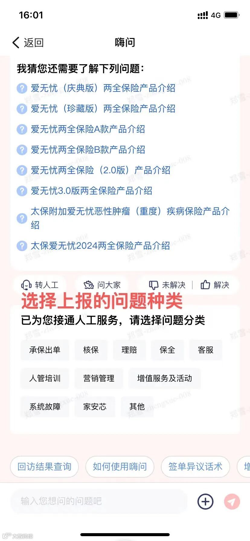 在神行太保或科技个险,点击嗨问图标,输入问题,随时随地解疑答惑。