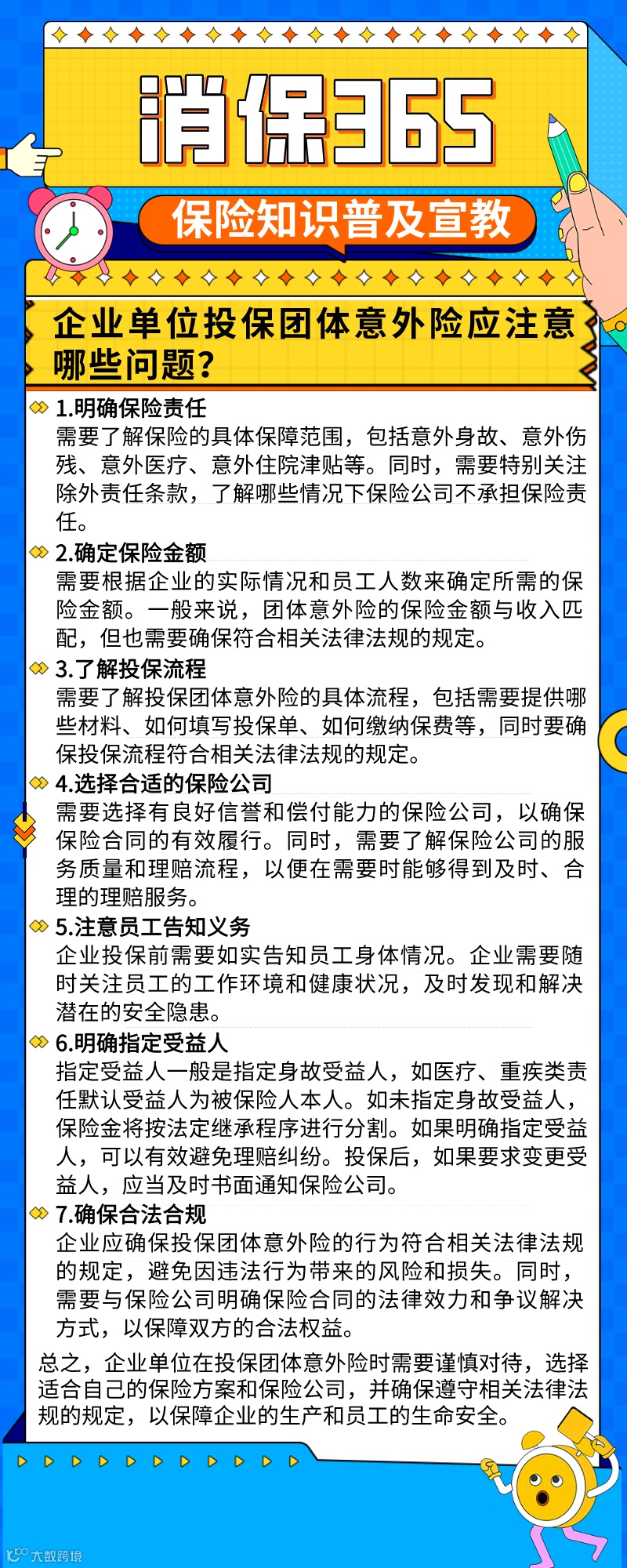 “消保365”第298天:企业单位投保团体意外险应注意哪些问题?
