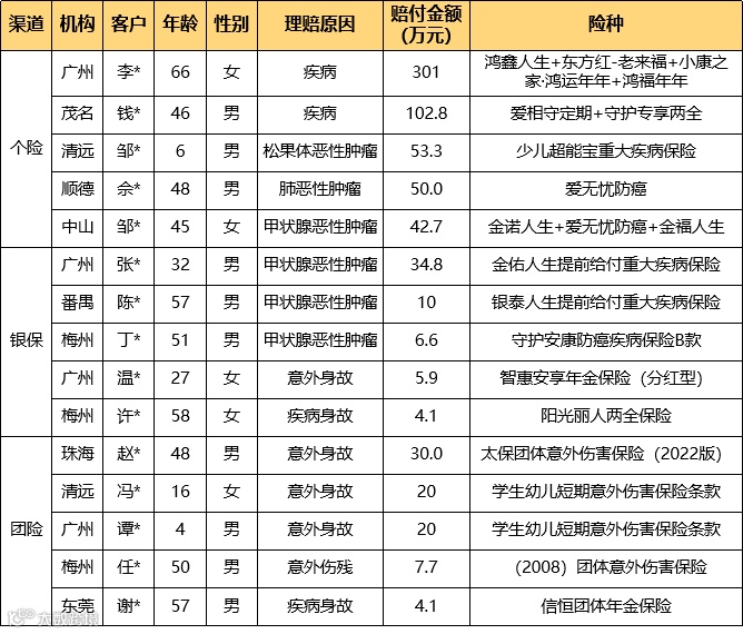 十二月个、银、团赔付前五