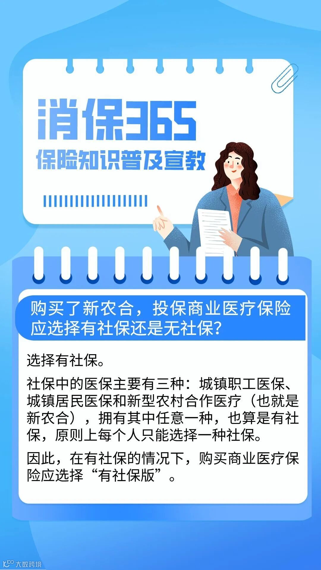 “消保365”第256天:购买了新农合,投保商业医疗保险应选择有社保还是无社保?