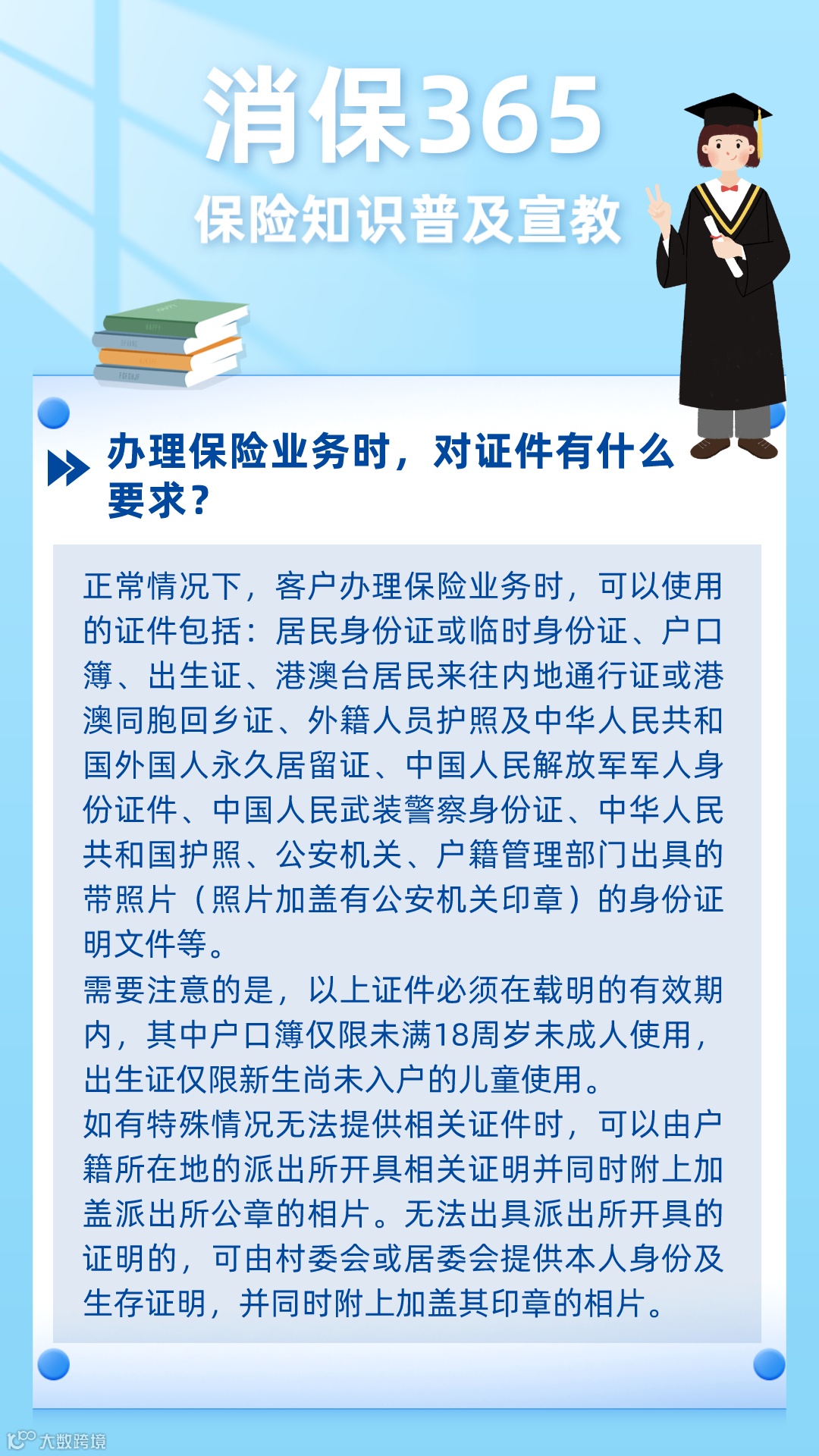 “消保365”第202天:办理保险业务时,对证件有什么要求?