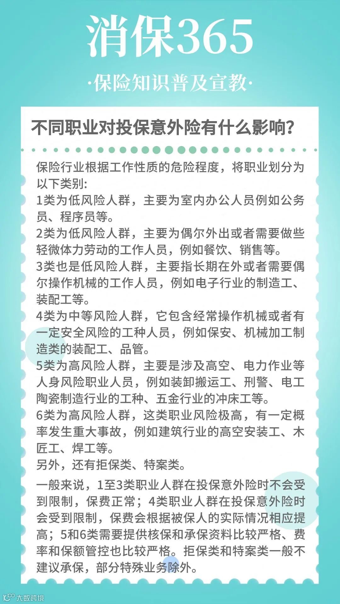 “消保365”第198天:不同职业对投保意外险有什么影响?