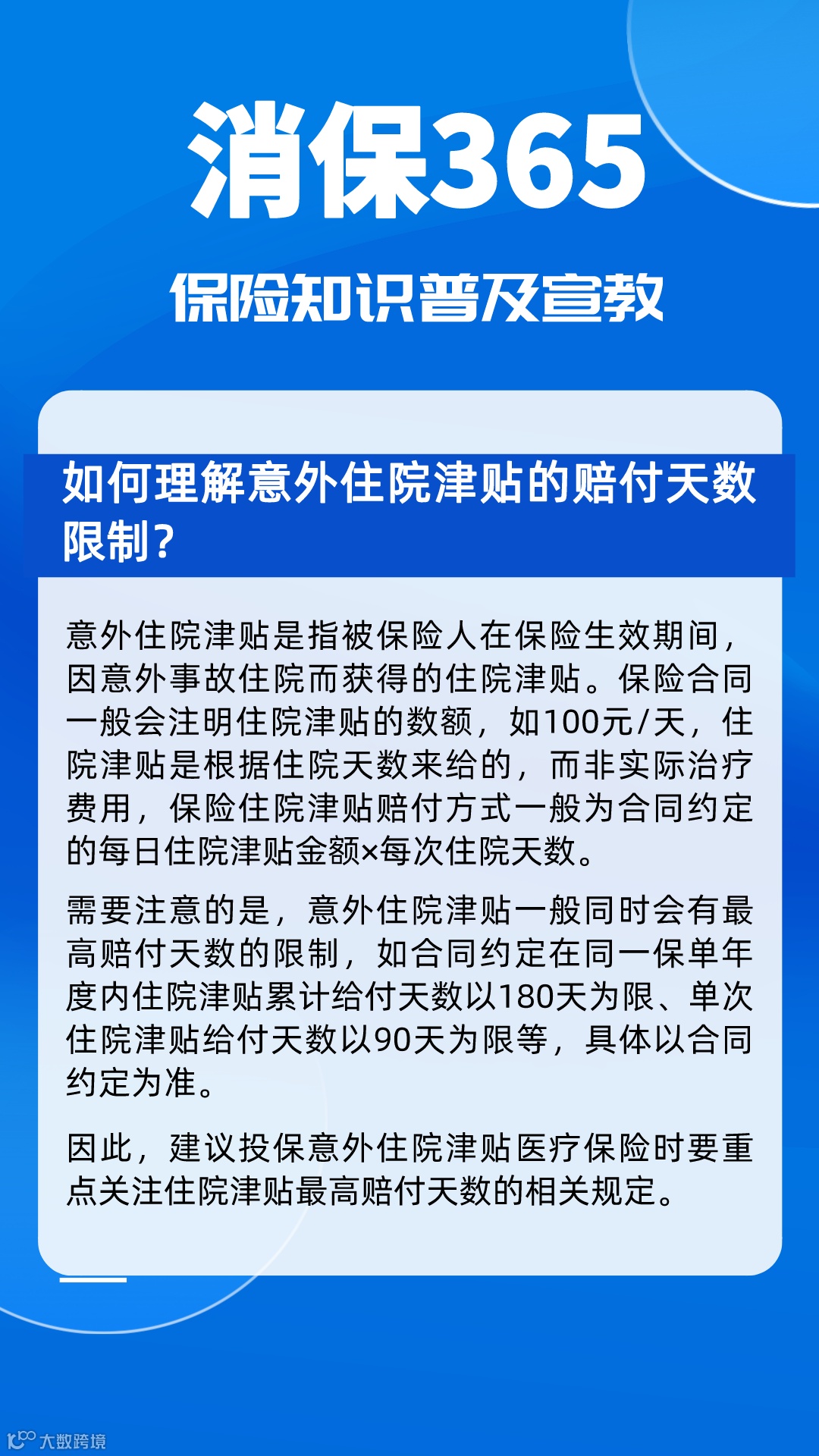 “消保365”第191天:如何理解意外住院津贴的赔付天数限制?