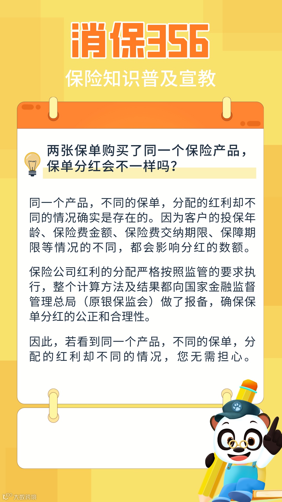 “消保365”第153天:两张保单购买了同一个保险产品,保单分红会不一样吗?
