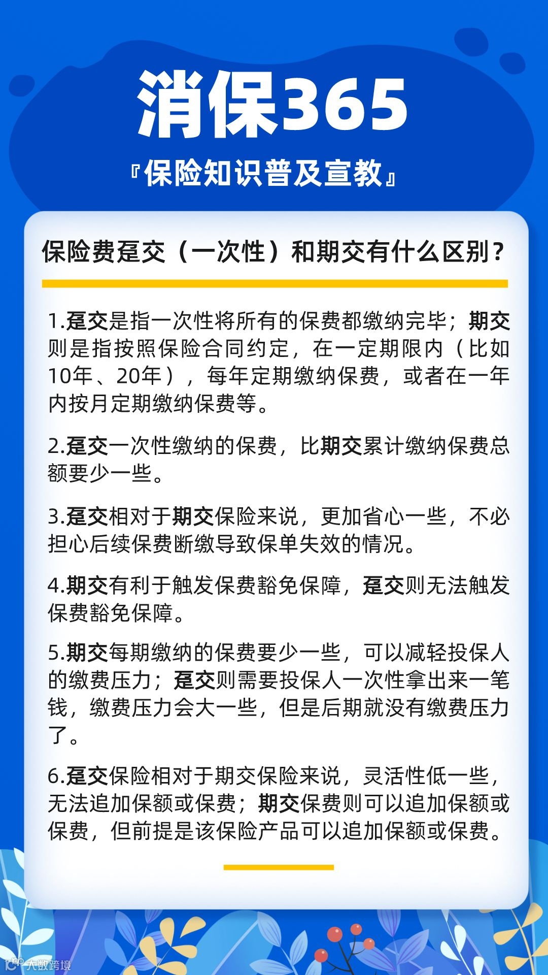 “消保365”第151天:保险费趸交(一次性)和期交有什么区别?