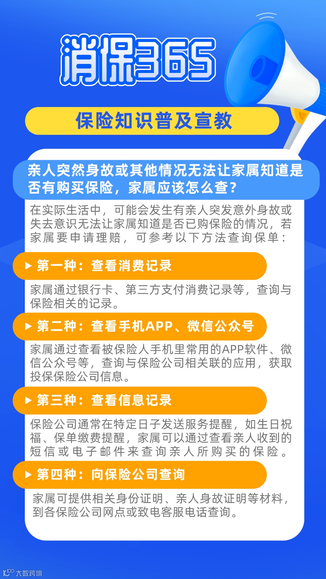 “消保365”第148天:亲人突然身故或其他情况无法让家属知道是否有购买保险,家属应该怎么查?