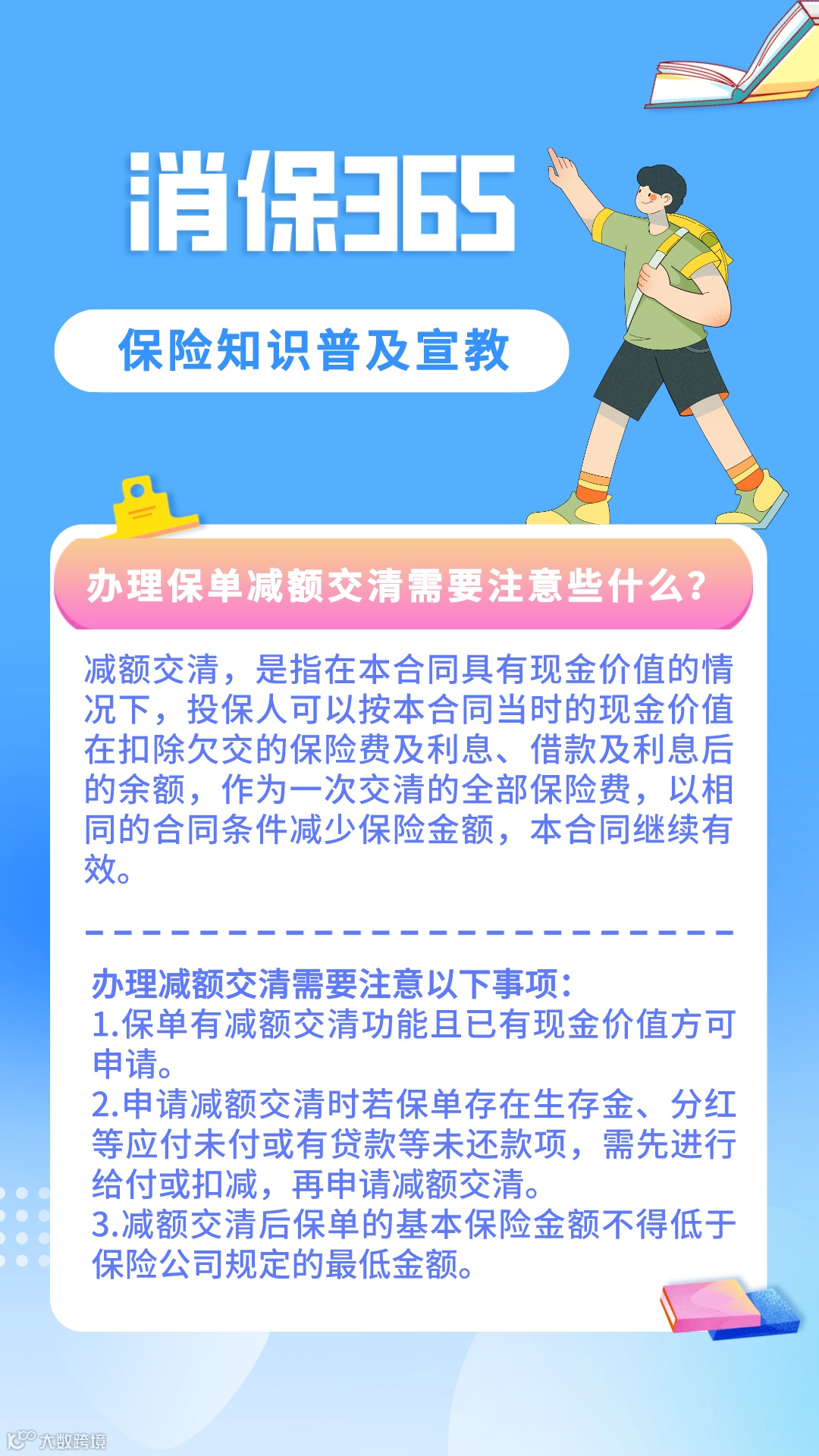 “消保365”第113天:办理保单减额交清需要注意些什么?