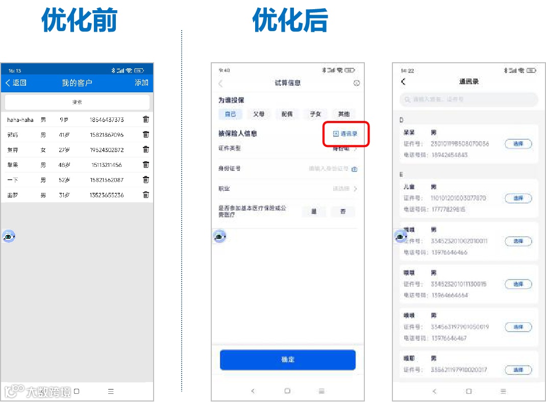 增加通讯录功能,录入客户信息时,可从通讯录中直接选择客户。新客户信息支持自动保存/更新至通讯录,无需单独维护。