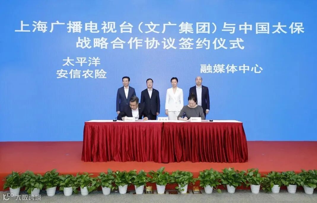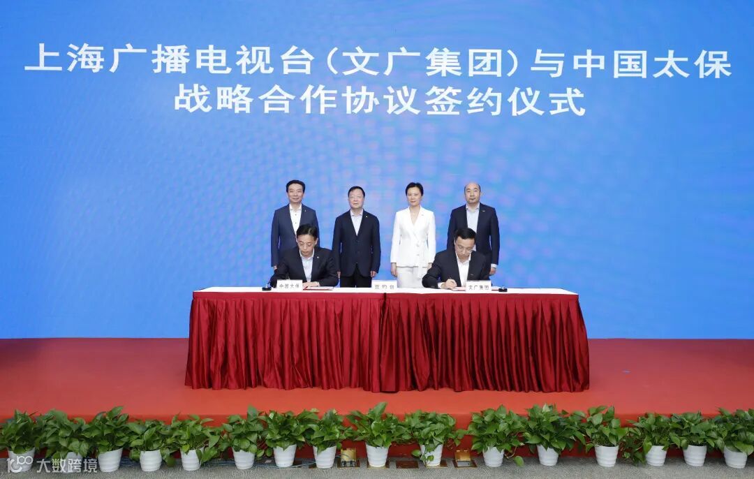 9月27日,中国太保与上海文广集团(SMG)举行战略合作协议签署仪式,中国太保党委书记、董事长孔庆伟,党委副书记、组织部长季正荣与文广集团党委书记、董事长沈军,党委副书记、台长、总裁宋炯明出席并见证签约。中国太保党委委员、副总裁俞斌与文广集团党委委员,东方明珠新媒体股份有限公司副董事长、总裁刘晓峰代表双方签署战略合作协议。