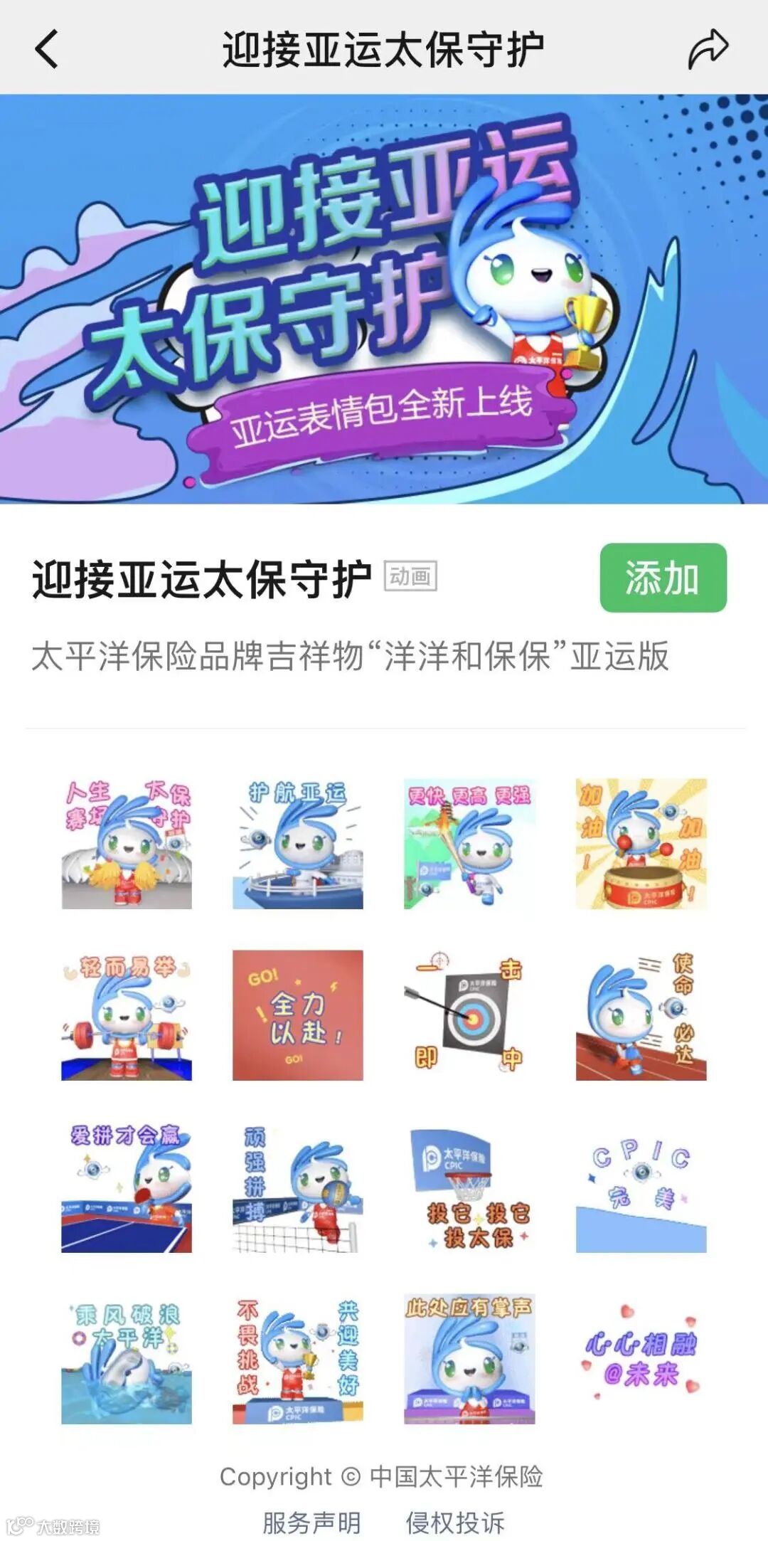 守护亚运更活力!在杭州亚运会最终举办时间确定之际,中国太保围绕“杭州亚运会”主题,以保哥家吉祥物“洋洋和保保”为载体,结合亚运会各大体育项目,推出的系列表情包也正式上线亮相,系列表情包展示出丰富精彩的体育活动,传递出积极向上的运动精神,彰显了全力护航亚运的年轻与活力。