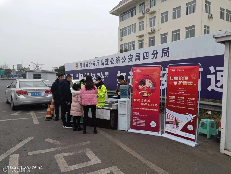 春节期间,中国太保产险四川眉山共享服务中心在高速路口设立服务点。
