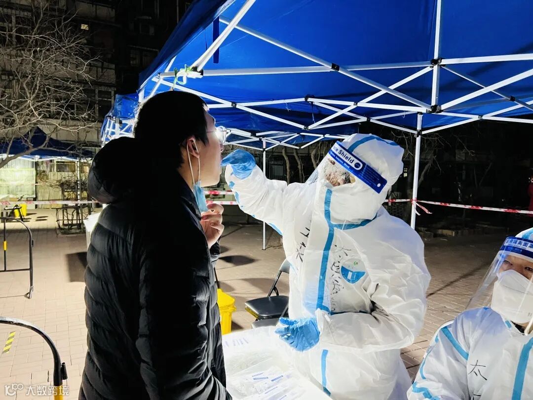 在凛冬的广场,每做完一个核酸采样,将冰凉的酒精擦拭在贴肤的薄手套上,取咽拭子——采样——封管——双手消毒,“太医管家”的现场医护人员们专业、细心,不停重复着手上的动作。面屏已经积水,口罩里也开始出现雾气,防护服内都是汗水,夹杂着疲惫和欣慰,他们始终坚守在一线,保障核酸检测有序进行。