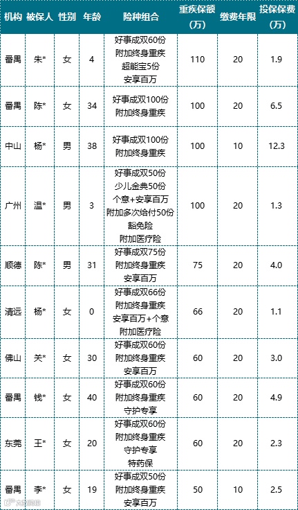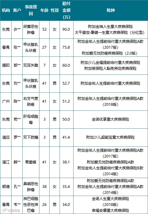 11月理赔赔付前十(重疾)