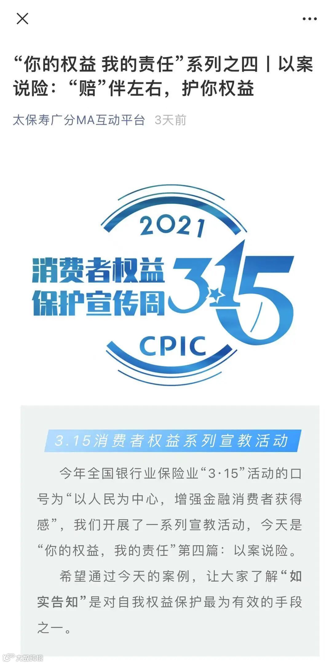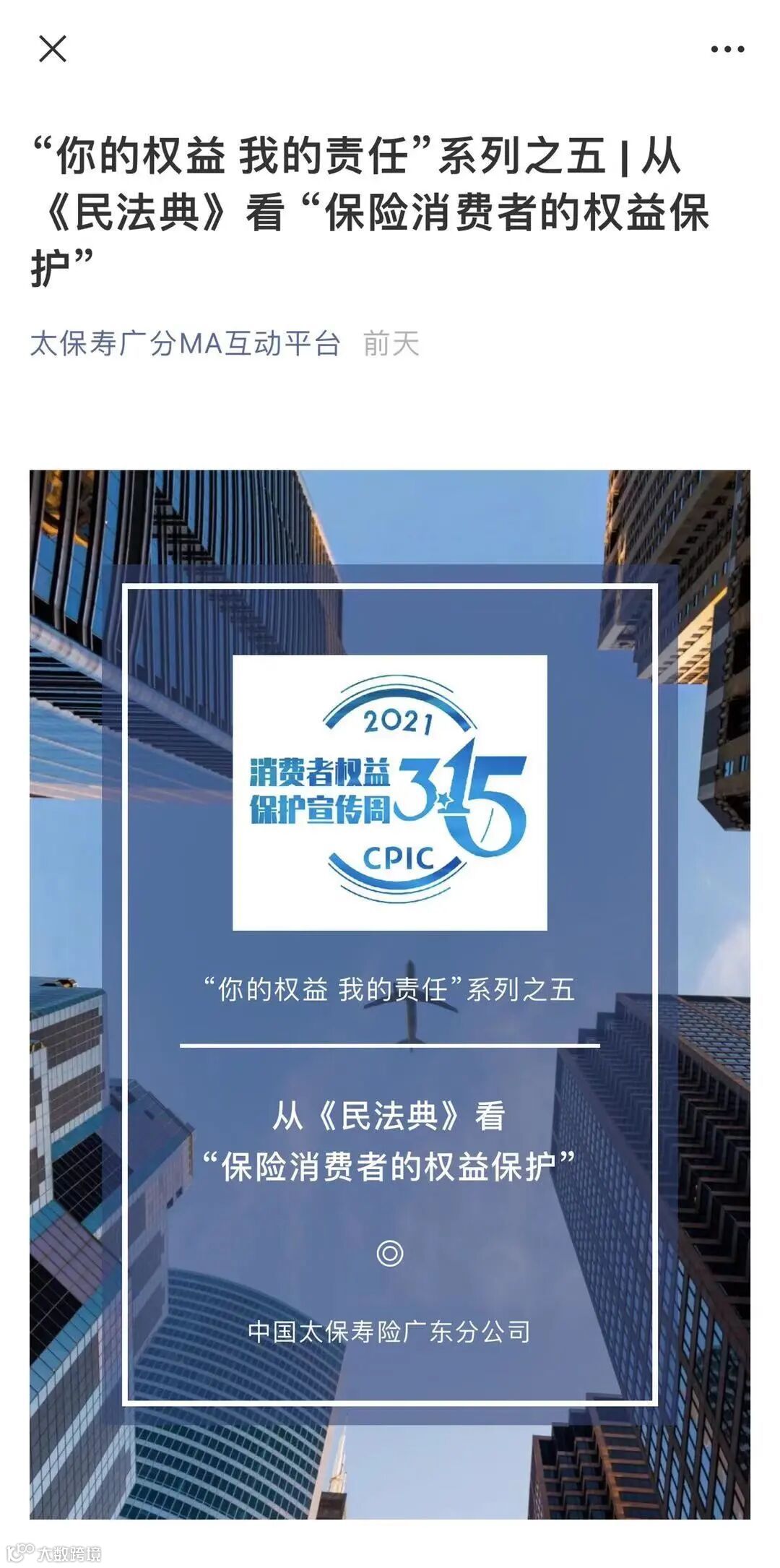 为提高消费者对保险产品和服务的认知能力,提升消费者安全意识、风险意识和自我保护能力,切实保护消费者的权益,中国太保寿险广东分公司组织开展了内容丰富、形式多样的“315”教育宣传周系列活动。