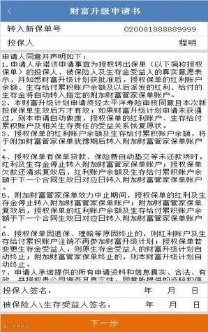 展示既往保单一览表,客户勾选升级保单并签署财富活动升级申请书。