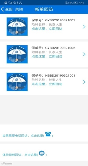 1、客户进入“享·服务”中的“新单回访”模块,可以看到需要进行回访的保单。