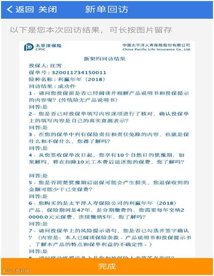 新保回访结果留存:
