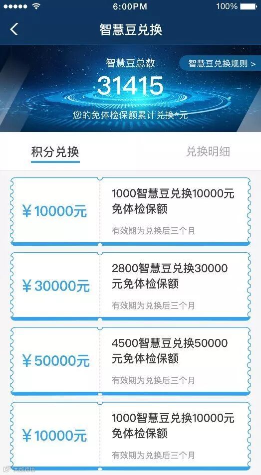 成功用200智慧豆兑换免体检保额1万