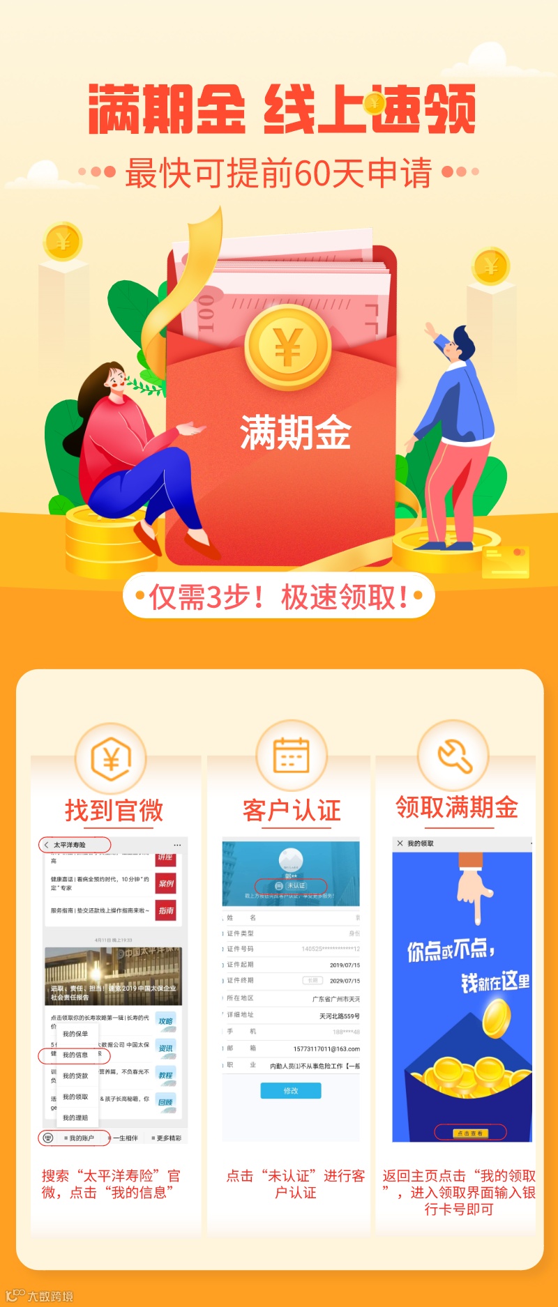 服务小贴士029丨满期金线上速领 ! 三步搞定!