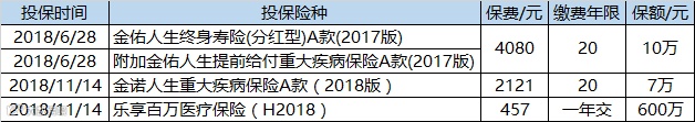 接下来,又为自己投保了三份保单: