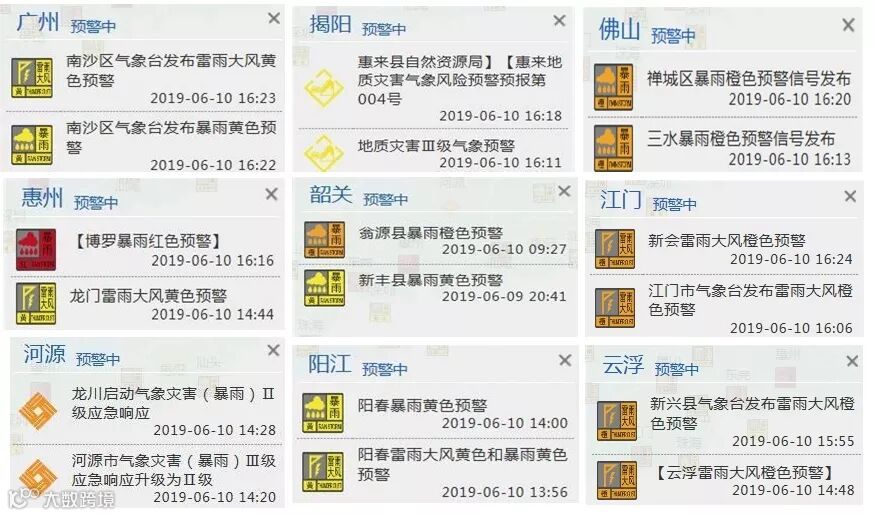 根据《广东省气象灾害应急预案》规定,省重大气象灾害应急办公室于2019年6月10日9时00分启动气象灾害(暴雨)Ⅲ级应急响应。