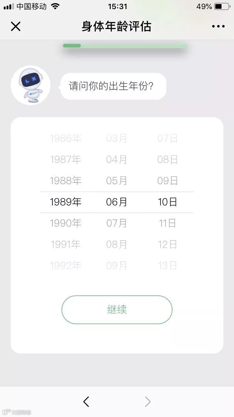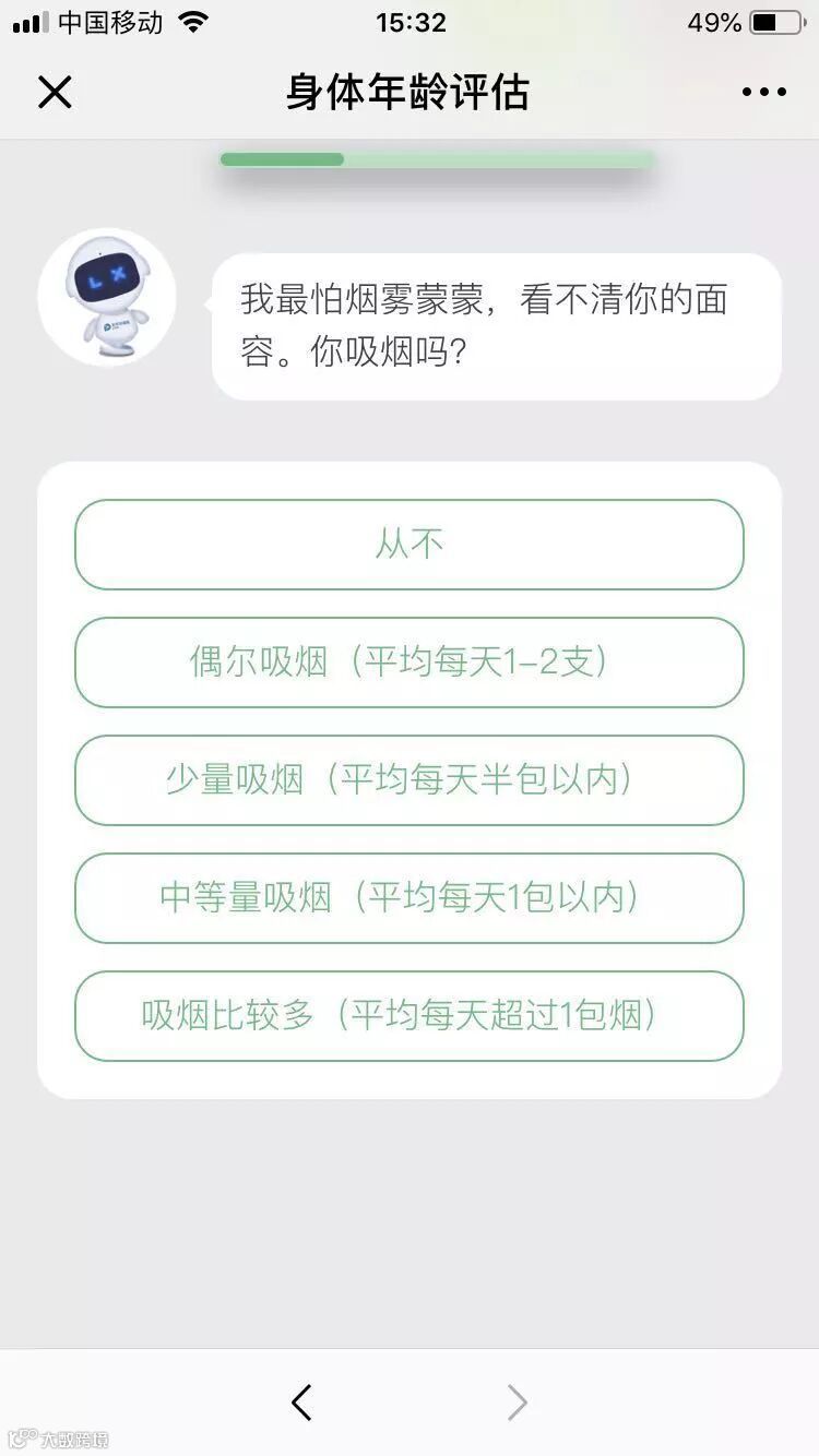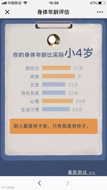 这是小编的测试结果,自我感觉不错呢!快来测测你的身体年龄吧! |