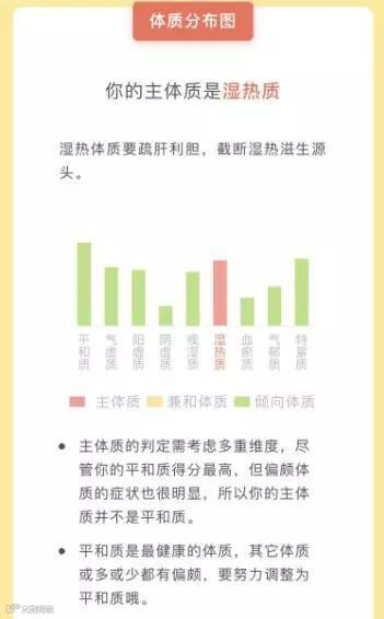 测试结果小编是湿热质,南方普遍湿气重,看来小编也未能幸免!小编按调理指南好好调理下才行! |