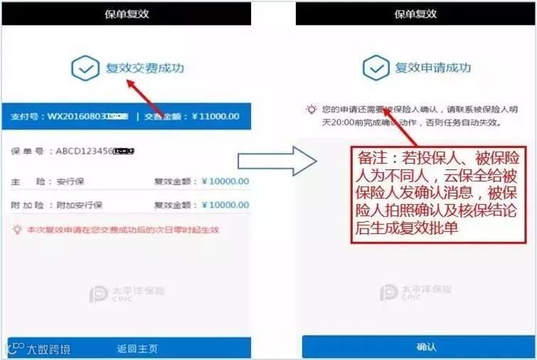 ⑤扣款成功后,复效申请在交费成功后次日零时起生效