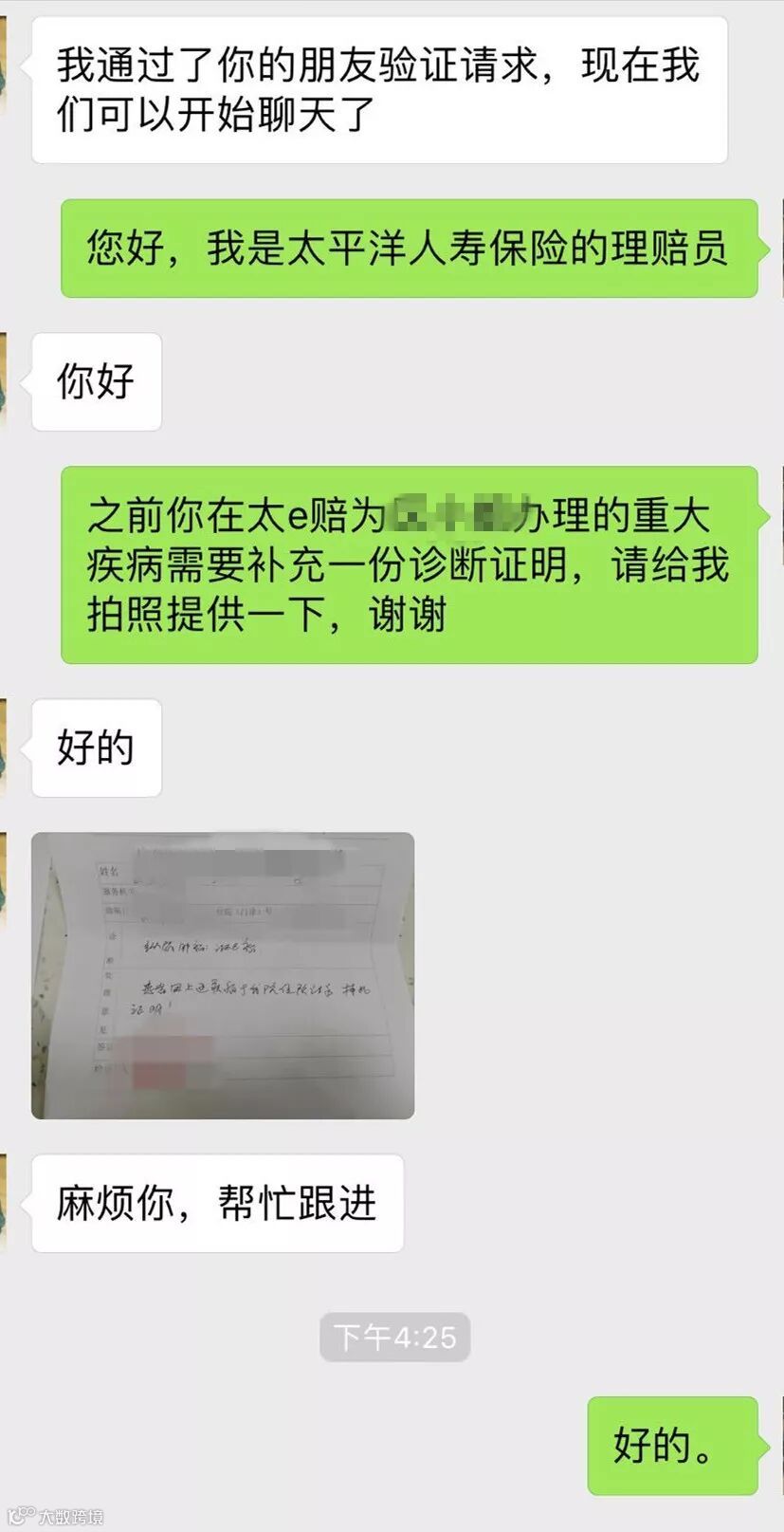 当天,我司理赔服务人员接案后随即进行电话回访。经了解客户情况后,理赔服务人员提醒林女士将活检报告,使用“太e赔”上传进行申请。并通过社交软件进行随时跟进和服务指导。