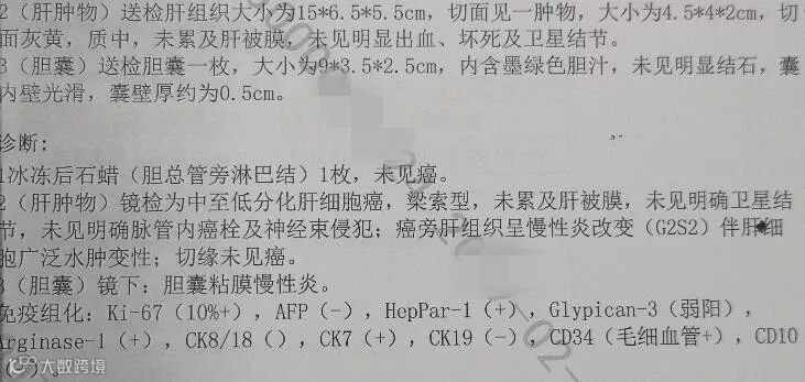 这下可把蒙女士吓到了,综合考虑后,在家人的陪伴下前往广州市某三甲医院门诊转入院进一步治疗,最终2019年1月15日病理诊断为原发性肝癌。