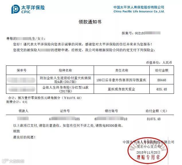 报案的客户给陈主任的印象特别深刻,这是一名粤西农村34岁的年轻妈妈,养育着2个孩子,家庭经济一般,但在2017年6月26日,她在闭塞的山村里力排众议签下了太平洋人寿的金佑人生终身寿险(分红型)A款、附加提前给付重大疾病保险,20年期缴,年缴保费3264元,保额8万,这三千多块钱,占当时她家庭年收入的十分之一。