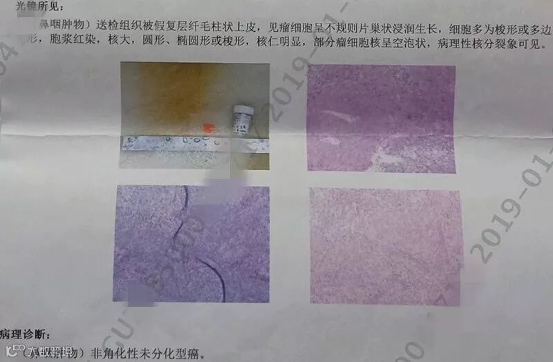 2018年8月上旬的某一天,魏女士无意间发现自己脖颈部肿胀不适,因未有其它症状,当时未予足够重视。三个月过后,肿物逐渐变大且伴有颈部僵痛不适,魏女士害怕了,紧急前往广州某三甲医院医院,查及双侧颈深间隙多发淋巴结肿大,11月6日电子鼻咽镜提示鼻咽增厚性质待查。经综合考虑后,为进一步治疗,在家人的陪伴下前往广州某肿瘤专科医院办理了入院手续,2018年11月21日,病理确诊鼻咽癌。