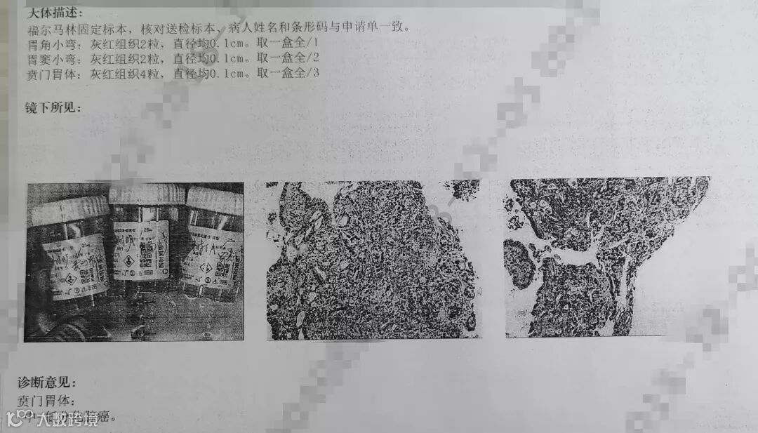 2018年11月底,父亲老杨因胸前区出现闷痛、上腹部不适,影响日常工作和夜间睡眠,在家人的陪同下到当地医院进行检查,胃镜显示为疑似胃癌,医生建议到上一级医院进行确诊、治疗。随后,老杨便转上级医院继续治疗,病理诊断为:低分化腺癌(贲门胃体)。