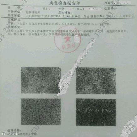 2018年10月的一天,王女士无意中触摸到发现自己左乳有一肿物,但精神状态良好,食欲睡眠好,自己也并没有感到任何异常,省吃俭用的她开始时并未在意要去医院检查的意思。直至11月的一天,太保服务人员饶秋群与王女士聊天时,无意间提及到,饶经理知道后强烈建议必须要去医院检查,经医院检查考虑病变可能性较大,即安排住院手术切除,病理检验报告出来后,被诊断为:乳腺浸润性导管癌。