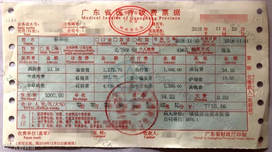 11月底,手术顺利的林女士办理出院手续,本次住院共花费了7755.46元,其中医保报销了2789.68元,有4965.78元由其个人承担,个人承担的费用接近65%!